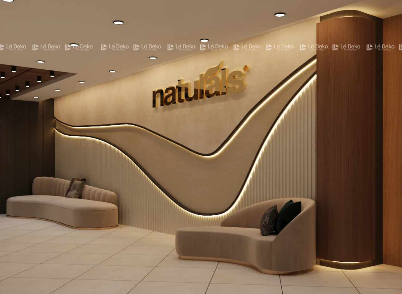 The Naturals project was designed to reflect the brand’s essence of freshness, comfort, and understated luxury. The interior combines soft curves, warm neutral tones, and subtle lighting to create a calming yet contemporary salon environment.
